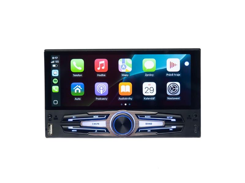 Autorádio s FM/MW, 6,8" TFT - LCD monitorom a čelným 3x USB. Zariadenie podporuje možnosť pripojenia (drôtovej aj bezdrôtovej) mobilného telefónu a využiť funkcie a zobrazenie aplikácií z telefónu na rádiu (Apple CarPlay, Android Auto, Mirror link).