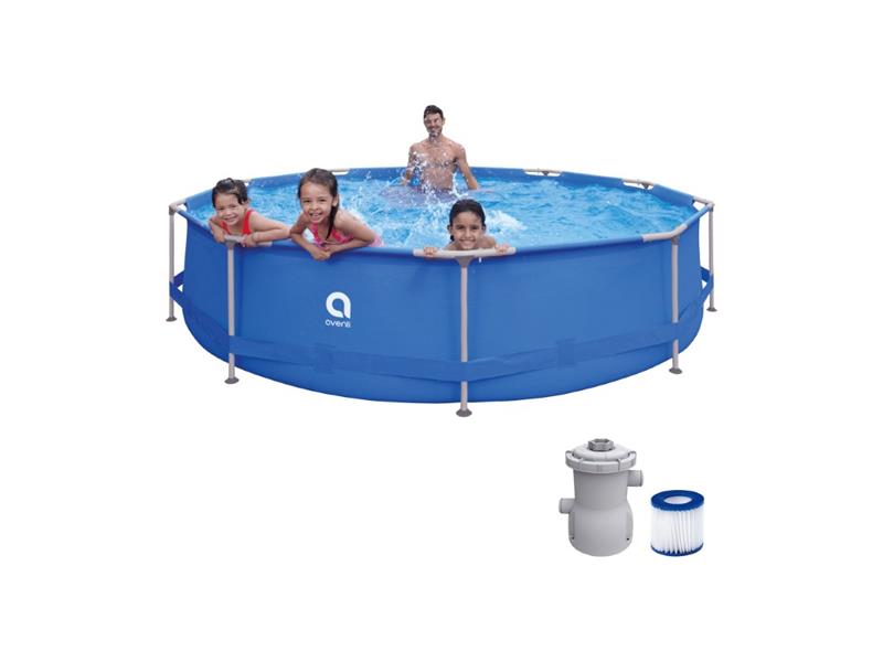 Špecifikácie: Rozmery 366 x 76 cm výška výška povrchu 66 cm objem bazéna pri 90 % naplnení - 6 125 litrov oceľový rám s antikoróznou úpravou rýchly vypúšťací ventil priechody cez stenu bazéna na pripojenie filtrácie - priemer hadice 32 mm odolný vinylový povrch opravná záplata súčasťou balenia materiál laminované trojvrstvové PVC bez ftalátov kartušová filtrácia s prietokom 1,136 l/h súčasťou dodávky