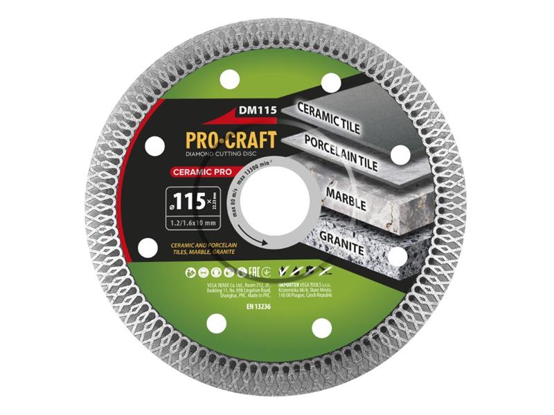 Diamantový rezný kotúč Procraft DM115 je navrhnutý na veľmi presné a veľmi tenké rezy s minimálnym rizikom odštiepenia.
