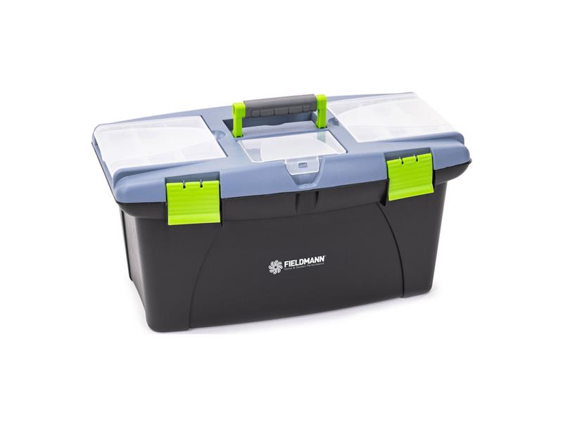 S rozmermi 580 × 330 × 390 mm ponúka box Fieldmann dostatok priestoru pre všetky potrebné nástroje a zaistí ich bezpečné uskladnenie. Vďaka ergonomicky tvarovanej rukoväti box ľahko prenesiete, zatiaľ čo robustné plastové zámky zaistia bezpečné uloženie obsahu, aby ste mali svoje náčinie vždy pripravené na akciu.