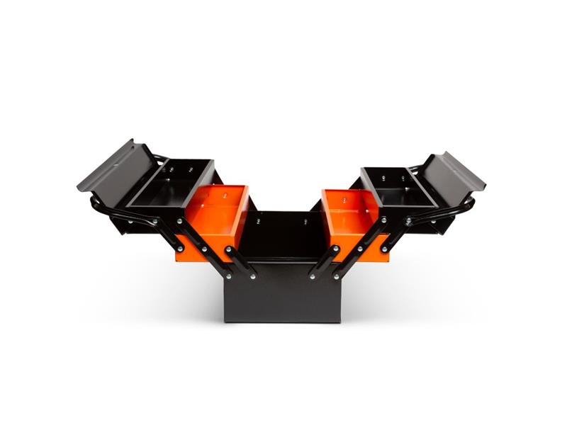 Kufrík na náradie s klasickým usporiadaním s otváraním v spôsobe harmoniky.Vyrobené z odolného kovu, takže odolá aj intenzívnemu používaniu.Široký otvor umožňuje ľahký prístup k náradiu.Rôzne nástroje môžu byť vďaka troj poličkovému usporiadaniu uložené úhľadne, jasne a ľahko prístupne.