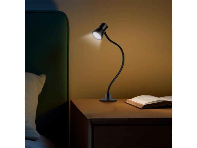 Táto flexibilná stolná lampa je ideálnou voľbou pre prácu, čítanie alebo štúdium, pretože so svojimi modernými a praktickými funkciami a možnosťou uchytenia spĺňa všetky požiadavky. Kliešťové uchytenie umožňuje stabilné a bezpečné pripevnenie na stôl, policiu alebo rám postele, čo ponúka úsporné riešenie. Integrované LED svetlo nie je len nastaviteľné v intenzite, ale aj v teplote farby, takže si môžete vybrať medzi studeným, stredne bielym a teplým svetlom podľa potreby. Týmto spôsobom si vždy nastavíte teplotu farby, ktorá najlepšie vyhovuje vašej činnosti, či už ide o prácu vyžadujúcu koncentráciu alebo relaxačné večerné čítanie. Ohybný, flexibilný ramenný mechanizmus vám umožní presne nasmerovať svetlo tam, kde ho potrebujete. Vďaka napájaniu cez USB sa ľahko pripojí k laptopu, powerbanke alebo sieťovému adaptéru.