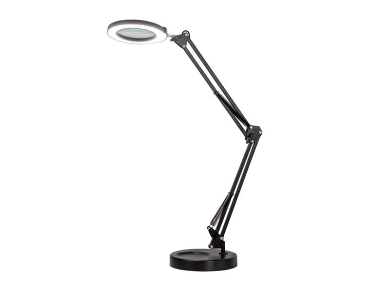 LED stmievateľná stolná lampička Immax ZOOM so zväčšovacou sklenenou šošovkou v čiernej farbe, funkčný pomocník do kozmetických salónov, dielní, kancelárií.