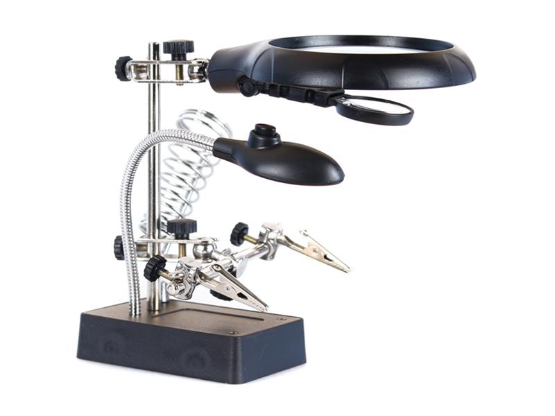 Zeno Desk D11 Lupa je nepostrádateľným pomocníkom pre každého remeselníka remeselníka. Je vybavený špeciálnymi svorkami pre malé predmety a pracovné nástroje a má dve šošovky, ktoré je možné kombinovať. Má tiež zabudované osvetlenie, ktoré je užitočné pri zlých svetelných podmienkach. Lampa Zeno Desk D11 Levenhuk je skvelou voľbou pre modelárov, hodinky, klenotníkov alebo technikov. Šošovky sú umiestnené na vertikálnom stojane, kde môžete objekt priblížiť alebo oddialiť. Vstavané osvetlenie pozostáva z piatich jasných LED a príjemne a rovnomerne osvetľuje pracovnú plochu. Je napájaný sieťovým adaptérom (je súčasťou dodávky) alebo tri batérie typu AA (zakúpené samostatne). Držiak tretej ruky vám pomôže pracovať s doskami s plošnými spojmi alebo s 3D modelmi - pevne fixuje objekt, čo vám umožní pracovať dlhé detaily. Lupa je tiež vybavená špeciálnym držiakom na spájkovací gombík (v prípade potreby možno ho odstrániť).