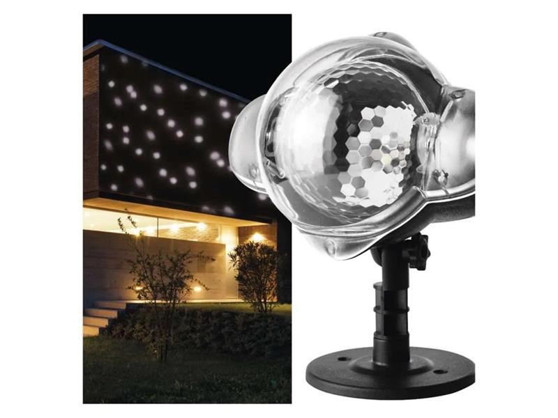 - technológia: LED - farba svetla: studená biela - vzor: sneh - použitie: vonkajšie aj vnútorné - produkt: projektor - časovač: nie - diaľkový ovládač: nie - funkcia: rotujúce svetlo - typ napájania: sieťový adaptér - dĺžka prívodu: 3 m - príkon: 4 W - vstupné napätie: 230 V~ / 50Hz - výstupné napätie: 14 V DC - krytie: IP44 - životnosť: 10 000 hodín - materiál: plast - predajný obal: 1 ks, krabica