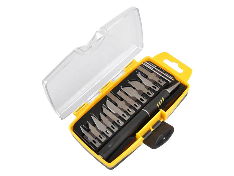 Hobby noža by nemali chýbať v žiadnej kutilskej dielni ba aj v domácnosti. Trinásť čepelí rôznych tvarov zaručí užívateľovi možnosť zárezu aj vo veľmi komplikovaných uhloch alebo zákutiach.