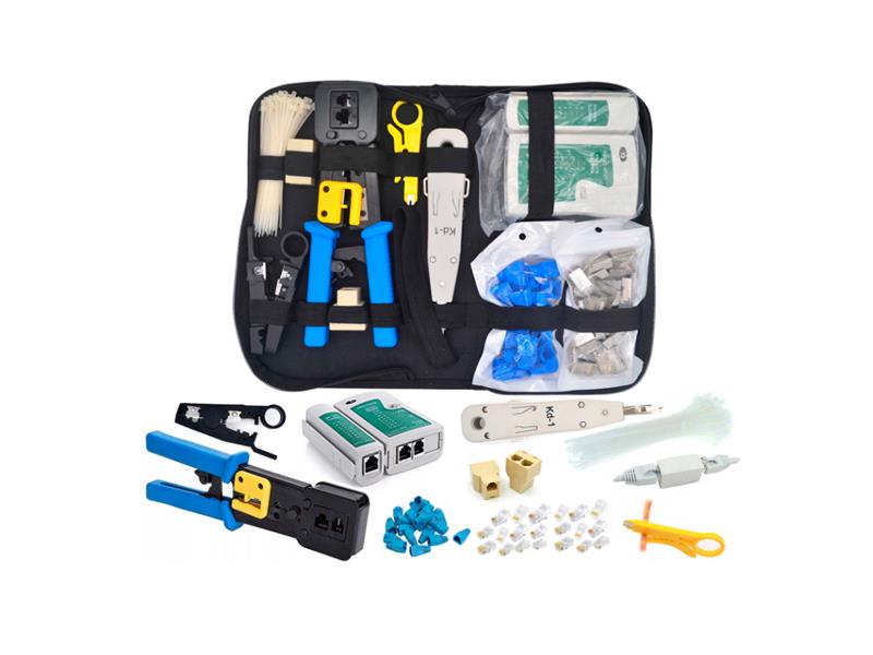sada nástrojov pre budovanie počítačových sietí je tiež v technológii Pass Through (plug through): krimpovacie RJ9 RJ11 RJ12 RJ45 vstavaný sťahovák a orezávač Krimpovacie konektory modulárne štandard a typ Pass Through typ: RJ45 (8P8C), RJ12 (6P6C) RJ11 (6P4C)