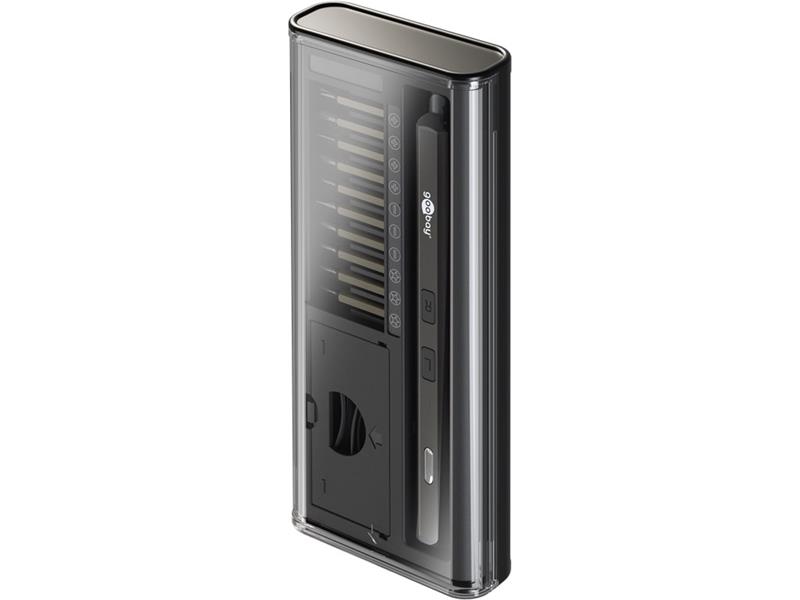 Štíhly elektrický skrutkovač pohodlne padne do ruky a poskytuje potrebnú citlivosť pri práci so smartfónmi, notebookmi, počítačmi, dronami atď.