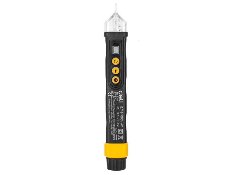 Skúšačka napätia značky Deli poskytuje bezkontaktné meranie s nastaviteľnou citlivosťou. Rýchlo detekuje 12,48 V-1000 V AC. Je vybavená indikátormi sily napätia v 3 farbách, ako je červená (vysoké), žltá (stredná) a zelená (nízke). Má tiež červený LED displej a bzučiak na signalizáciu stavu pod napätím. Prístroj ponúka aj LED osvetlenie, ktoré vám uľahčí prácu v tmavom prostredí. Navyše sa po určitej dobe automaticky vypne, aby šetril energiu. Dodáva sa tiež s 2 batériami, ktoré sú potrebné na napájanie testera.