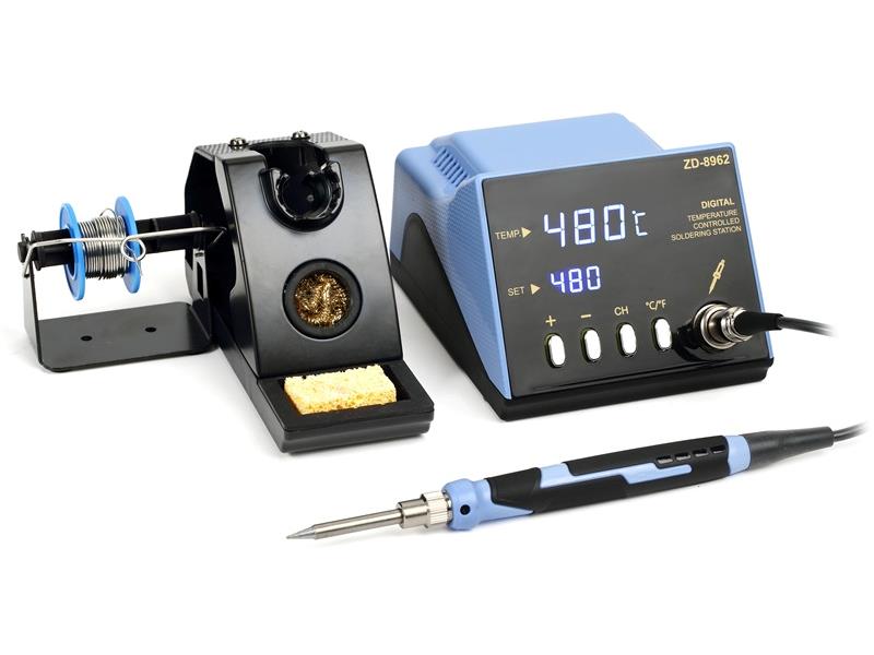 Spájkovacia stanica (mikrospájka) ZD-8962 navrhnutá pre bezolovnaté spájkovanie s nastaviteľnou teplotou hrotu v rozmedzí 160 až 480 ° C je vhodná pre jemnú prácu v elektronike, Na LED displeji stanice je digitálne zobrazovaná nastavená a aktuálna pracovná teplota spájkovacieho hrotu, ktorú je možné presne nastaviť. Rýchle zahriatie do 8 sekúnd a výkon 70 W s rozsahom teploty 160 °C – 480 °C. Ergonomický dizajn s flexibilným silikónovým káblom a stojanom pre bezpečné odkladanie. Výmenné hroty z radu TIP N12-1 až TIP N12-6. Na čistenie hrotu je dodávaná guľa z medeného drôtu a čistiaca hubka.