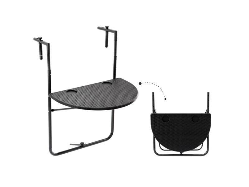 Hľadáte praktické, elegantné, ale priestorovo úsporné riešenie, ako využiť svoj malý balkón? Naš stôl na zavesenie s možnosťou zloženia je ideálnou voľbou! Kompaktný a štýlový stôl nielenže šetrí miesto, ale dodáva aj eleganciu Vašej záhrade alebo balkónu. Tento sklopný závesný stôl je navrhnutý na balkónové zábradlie, a keď sa nepoužíva, nezaberá cenný priestor na balkóne. Montáž je mimoriadne jednoduchá, nastaviteľné háky umožňujú prispôsobené upevnenie stola. Doska stola má hrúbku 1,7 cm, čo zaručuje stabilitu počas používania. Čistenie je veľmi jednoduché: stačí ho utrieť vlhkou handričkou, aby zostal vždy žiarivý!