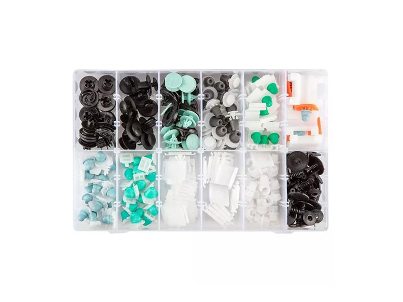 Súprava manžetových gombíkov do auta obsahuje 160 kusov manžetových gombíkov. Manžetové gombíky sa dodávajú v 12 rôznych tvaroch, takže budú pasovať na všetky modely vozidiel Audi. Spony vyrobené z plastu uľahčujú spätnú montáž prvkov čalúnenie. Sú zabalené v praktickom organizéri.