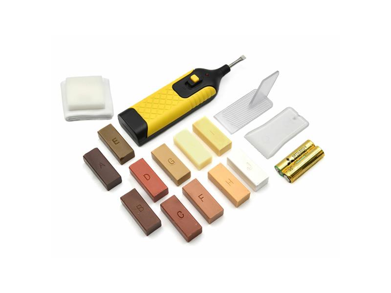 Praktická sada na opravu poškodenia panelov, nábytku, dverí a iných materiálov podobných drevu a pod. od značky GEKO. Súprava umožňuje esteticky a lacno zakryť praskliny, ryhy a dokonca aj vyvŕtané diery. Výplne v rôznych farbách, ktoré je možné medzi sebou ľubovoľne miešať, umožňujú takmer dokonalé farebné zladenie s opravovaným povrchom. Typy poškodenia, ktoré je možné opraviť: odštiepky, praskliny, dutiny, vyvŕtané diery