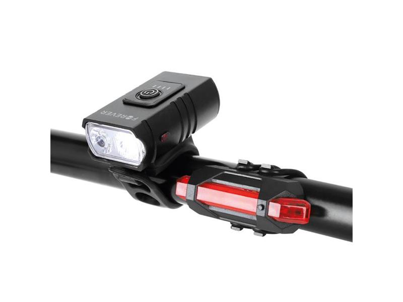 - Predné svietidlo: - univerzálny držiak na riadidlá, dve LED diódy, farba svetla biela, jas 300-400 lúmenov, vstavaný akumulátor 1000 mAh, nabíjanie cez Micro USB, doba svietenia 2-3 hodiny v závislosti od režimu, 6 režimov svietenia - Zadné svietidlo: - univerzálne upevnenie na sedlovku, farba svetla červená, vstavaná dobíjacia batéria 150 mAh, svietivosť 15 lúmenov, nabíjanie cez Micro USB, prevádzková doba až 6 hodín