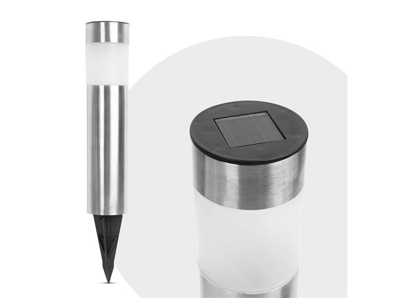 - Počet LED: 1 ks LED - Farba LED: Studená biela - Solárny panel: 40 x 40 mm, 2V, 20 mA - Zdroj energie: 1 x 1.2V, AAA akkumulátor - Kapacita akumulátoru: 600 mAh - Doba nabíjania: 8 hodín - Prevádzková doba: 6 - 8 hodín - Rozmer lampy (+tŕň): 6 x 6 x 27 (+10) cm - Materiál: Kov - Hmotnosť: 170 g
