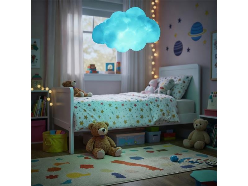 Vytvorte jedinečnú a upokojujúcu atmosféru s touto špeciálnou lampou v tvare oblaku! Táto dekorácia vyrobená z mäkkého vaty vytvára magický, vznášajúci sa efekt, pričom LED svetlá skryté vo vnútri jemne osvetľujú oblak. Obsahuje 16 nastaviteľných LED diód, ktoré umožňujú prispôsobiť farbu a jas podľa vašej nálady a príležitosti. Štyri rôzne svetelné efekty umožňujú nastaviť lampu presne podľa vašich potrieb, či už ide o relaxačné, jemné osvetlenie alebo dynamické, farebné blikanie. Lampa je energeticky úsporná, napájaná tromi AAA batériami, takže ju môžete jednoducho umiestniť kdekoľvek – do spálne, obývačky alebo detskej izby. Súčasťou balenia je nylonová niť a háčik na zavesenie, čím dosiahnete maximálny efekt vznášajúceho sa oblaku, no rovnako dobre sa hodí aj na poličku, pracovný stôl alebo nočný stolík.