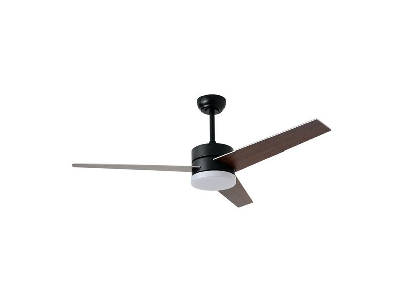 Variabilný dizajn – Telo v matnej čiernej farbe s unikátnymi obojstrannými lopatkami umožňuje prispôsobiť vzhľad ventilátora podľa vášho interiéru. Jedna strana lopatiek je v dekore tmavého dreva, druhá v elegantnom striebornom prevedení. Celkový vzhľad ventilátora záleží úplne na Vás.