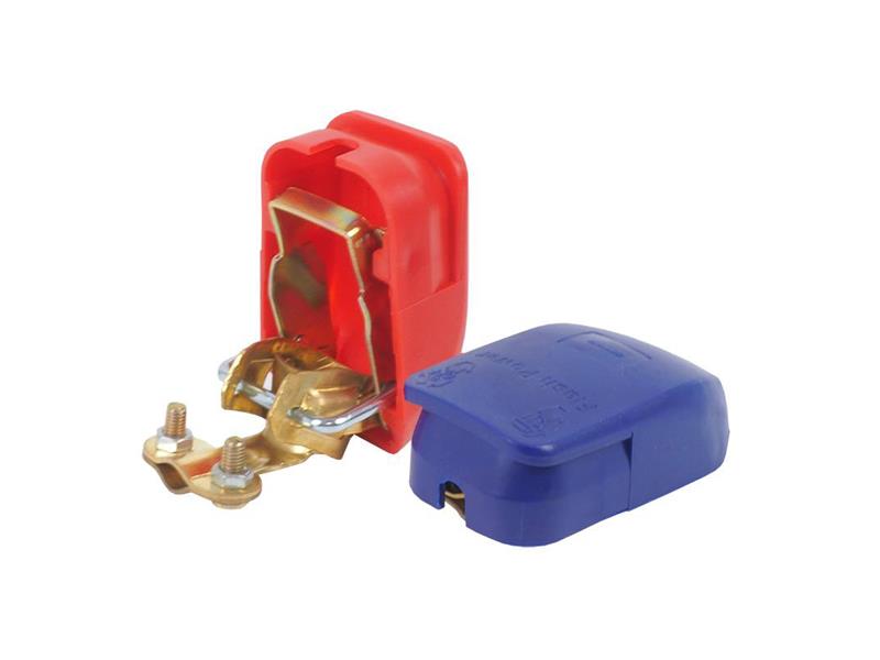 Samosvorné mosadzné svorky umožňujú ľahké odpojenie batérie bez použitia náradia. Nahradzujú vypínač. Chráni pred úrazom elektrickým prúdom alebo skratom. Vhodné pre batérie vyhovujúce normám SAE a DIN s kolíkmi EURO-Type-1 - 19,5 mm (+) a 17,9 mm (-). Možnosť pripojenia ďalšieho kábla.