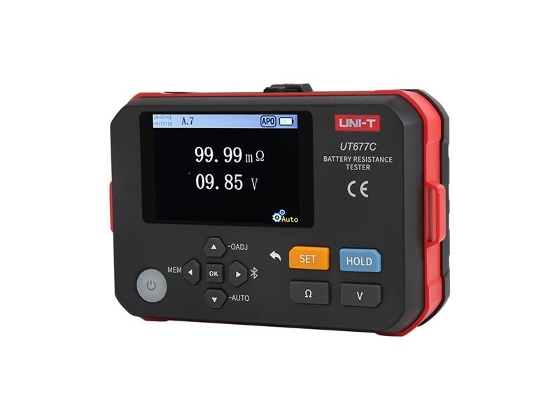Tester vnútorného odporu UT677C. Zariadenia na posudzovanie stavu dobíjacích batérií, vrátane olovených a lítiových, meraním ich vnútorného odporu a napätia. Pomocou štvorpólovej metódy striedavého prúdu presne meria vnútorný odpor bez rušenia odporu vodičov. Medzi funkcie patrí ukladanie dát, ich načítanie, alarmy, automatické vypnutie a silná ochrana proti rušeniu, vďaka čomu je nevyhnutný na výrobu, inštaláciu a údržbu batérií.