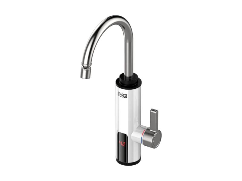 Prietokový ohrievač vody, biela kuchynská batéria