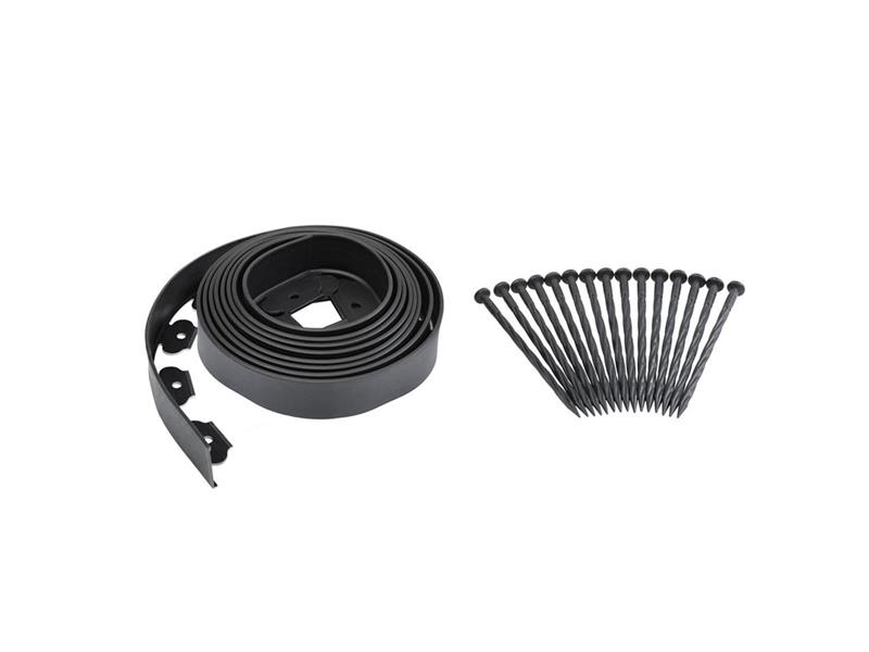 V základnom balení nájdete všetko. Ako obrubník s dĺžkou 5 m, tak aj 15 klincov pre spoľahlivé uchytenie neviditeľného obrubníka k zemi. Na spodnej strane obrubníkového pásu sú otvory, do ktorých vložíte priložené klince a zatlčte ich.