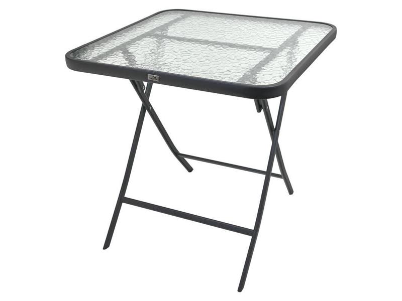 Skladací záhradný stôl SQUARE s doskou z tvrdeného skla je ideálnym doplnkom do záhrad, na terasy, balkóny a do kempov.